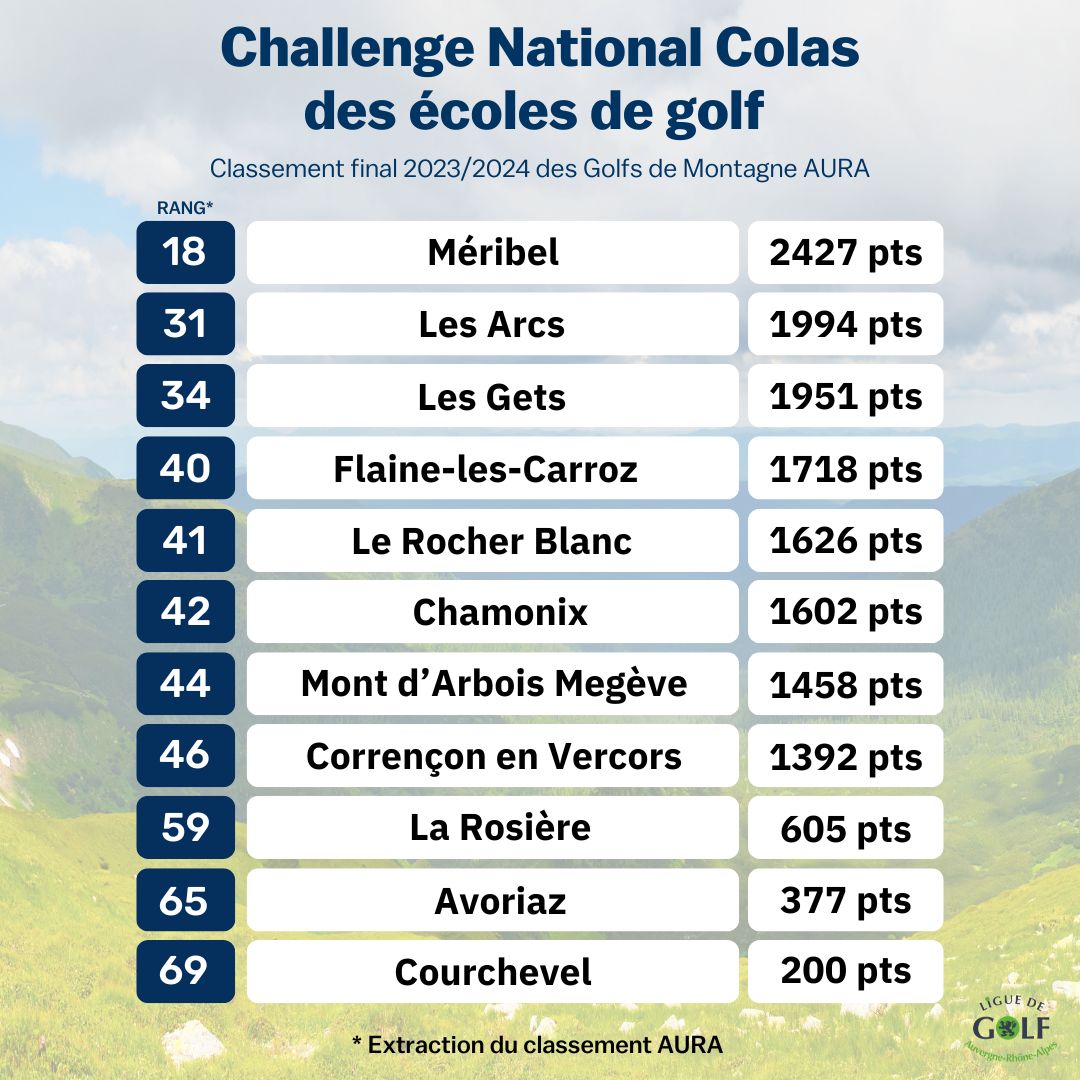 Le Challenge des Ecoles de Golf pour la saison 2023/2024 est désormais terminé.